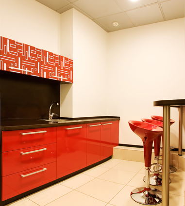 橱柜还存在噪音、光线的污染,要避免这些问题,就要使用高质量的五金件,合理选择面板和台面。