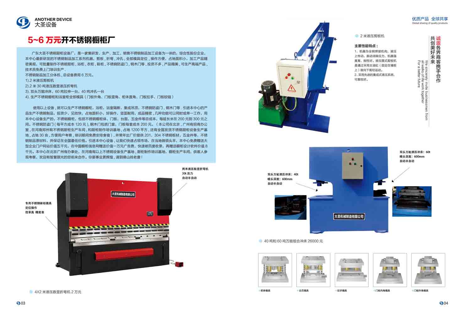 不锈钢制品加工分体机,总设备费用6万元。